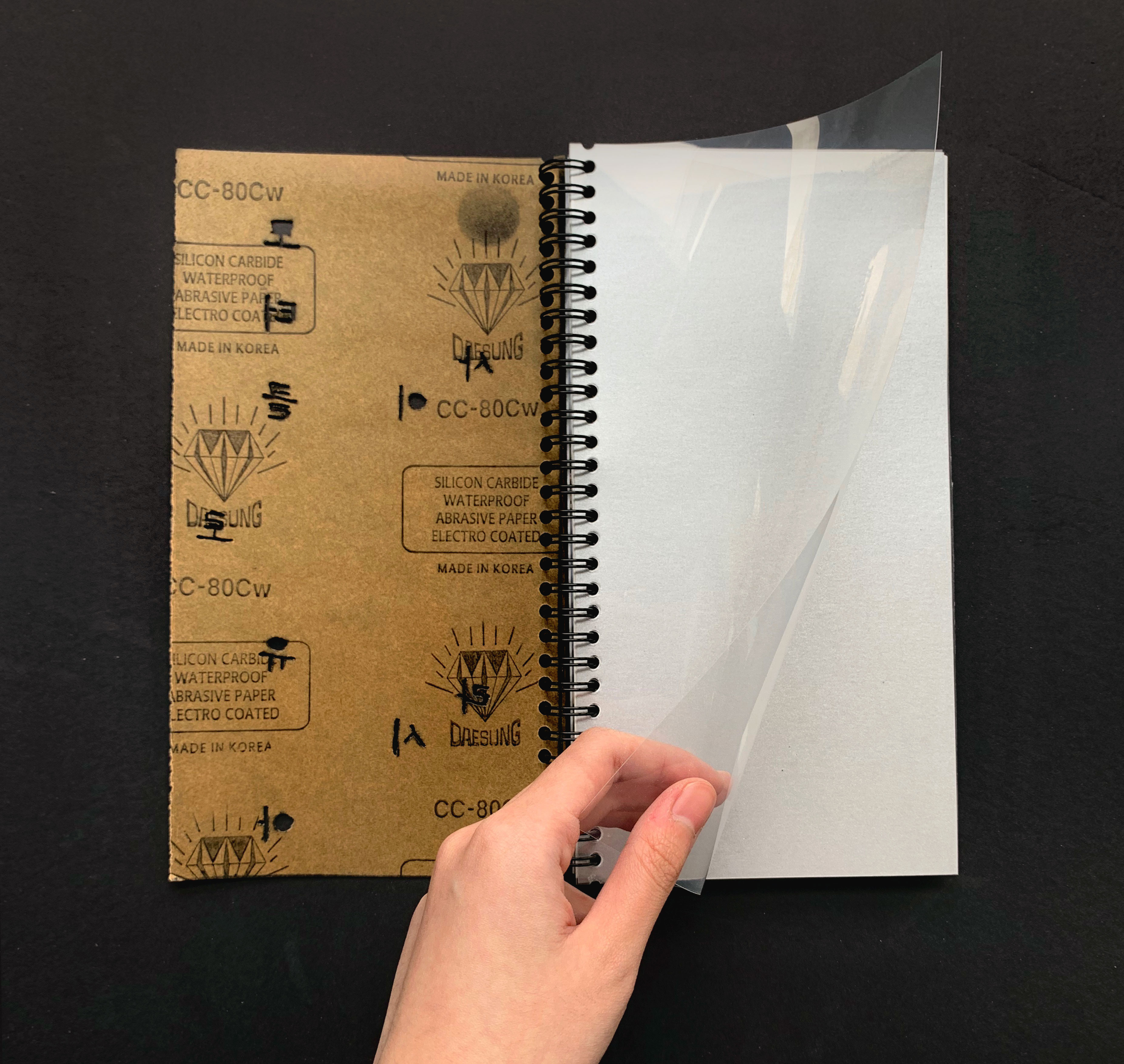 도로 질감을 사포로 표현했고, pvc를 덧대 질감 대비를 주었다.